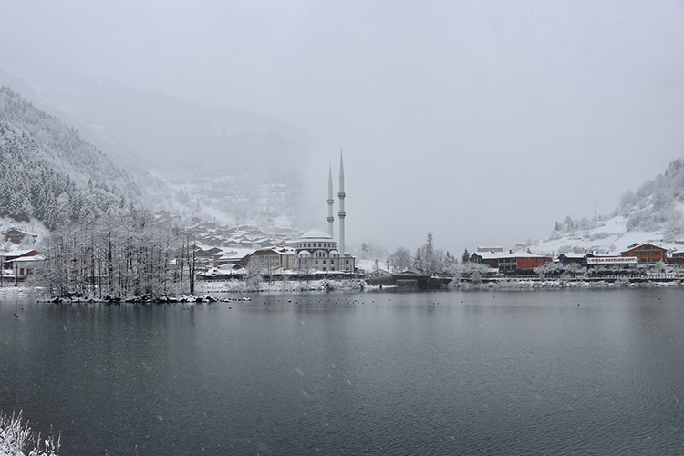 Bölgenin önemli turizm merkezlerinden Çaykara ilçesindeki Uzungöl de beyaza büründü.