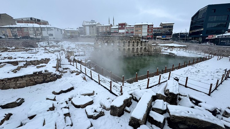 Karın ardından Osmanlı döneminden kalma han, hamam, cami, çeşme ve konaklar, beyaz örtüyle güzel manzara oluşturdu.