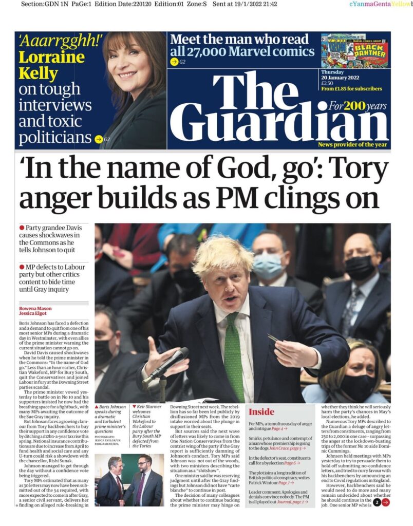Korona yasakları sırasında başbakanlık konutunda partiye katıldığını itiraf eden İngiltere Başbakanı’na dün Avam Kamarası’nda “Tanrı aşkına, git” diyen Muhafazakar milletvekili David Davis’in sözleri İngiliz gazetelerinin manşetlerinde.