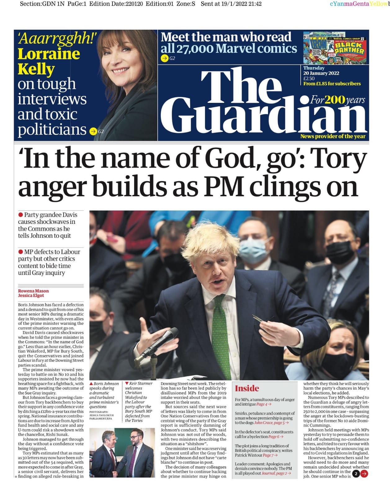 HaberlerManşet Boris Johnson için çember daralıyor Serbestiyet - 20 Ocak 2022 - 09:38 Korona yasakları sırasında başbakanlık konutunda partiye katıldığını itiraf eden İngiltere Başbakanı’na dün Avam Kamarası’nda “Tanrı aşkına, git” diyen Muhafazakar milletvekili David Davis’in sözleri İngiliz gazetelerinin manşetlerinde.