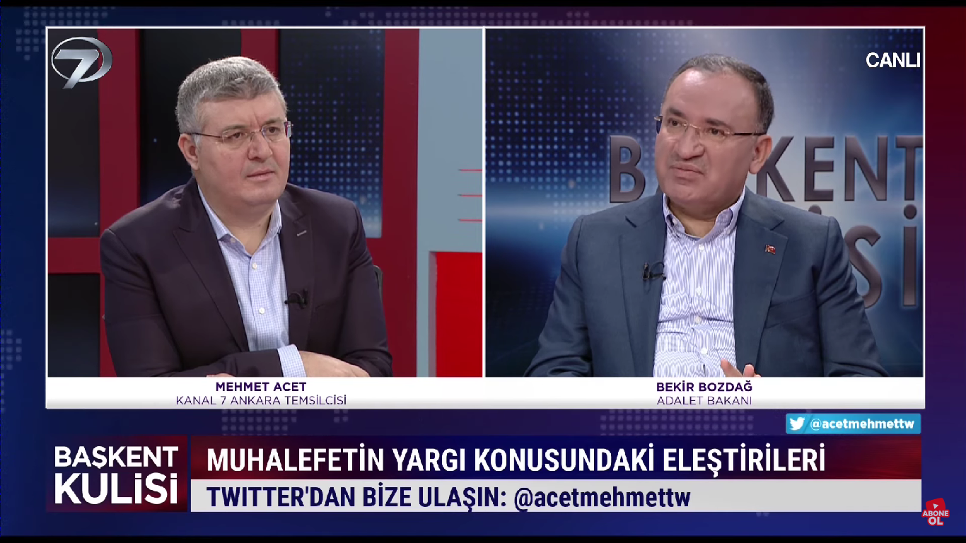 Adalet Bakanı Bekir Bozdağ, Kanal 7’de gündemle ilgili değerlendirmelerde bulundu.