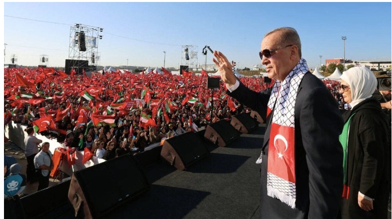 “Dün Ukrayna-Rusya savaşında timsah gözyaşı dökenler Gazze’de binlerce çocuğun ölümünü seyrediyor. Gazze’de ölen bu yavrular için neden sesiniz çıkmıyor. Ey batı, size sesleniyorum. Siz yeniden bir hilal-haçlı mücadelesi mi estirmek istiyorsunuz? Böyle bir gayretini içindeyseniz biliniz ki bu millet ölmedi. Aynı kararlılıkla Libya’da, Karabağ’da neyse bilin ki Orta Doğu’da da oyuz.”