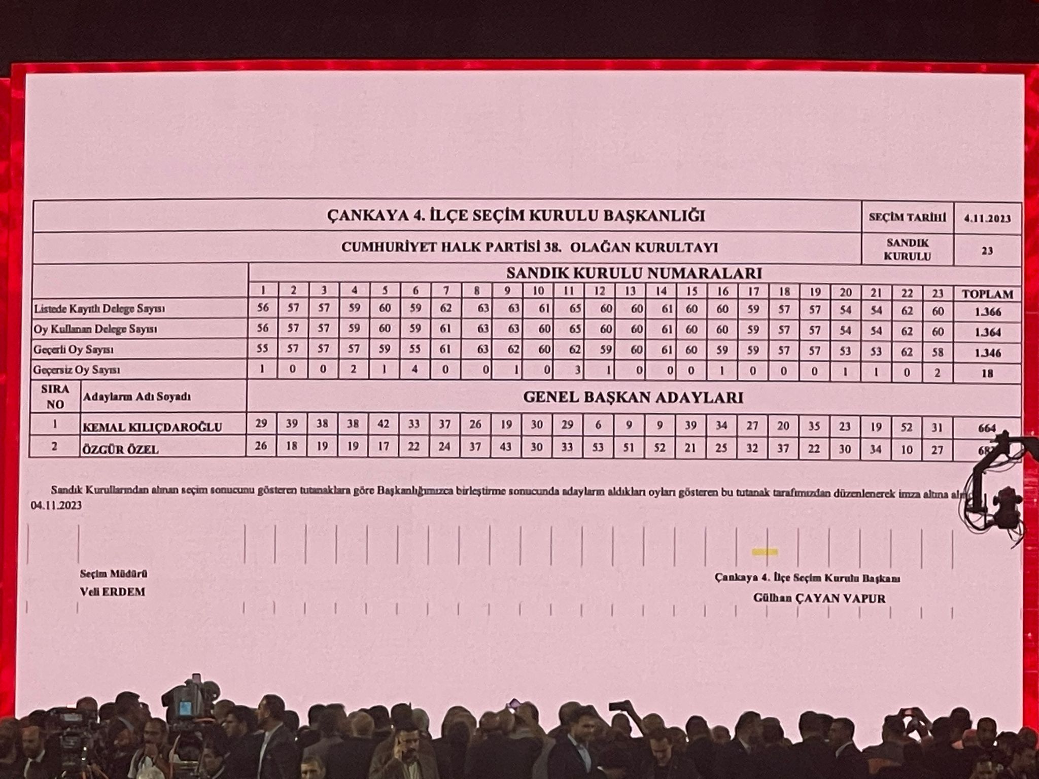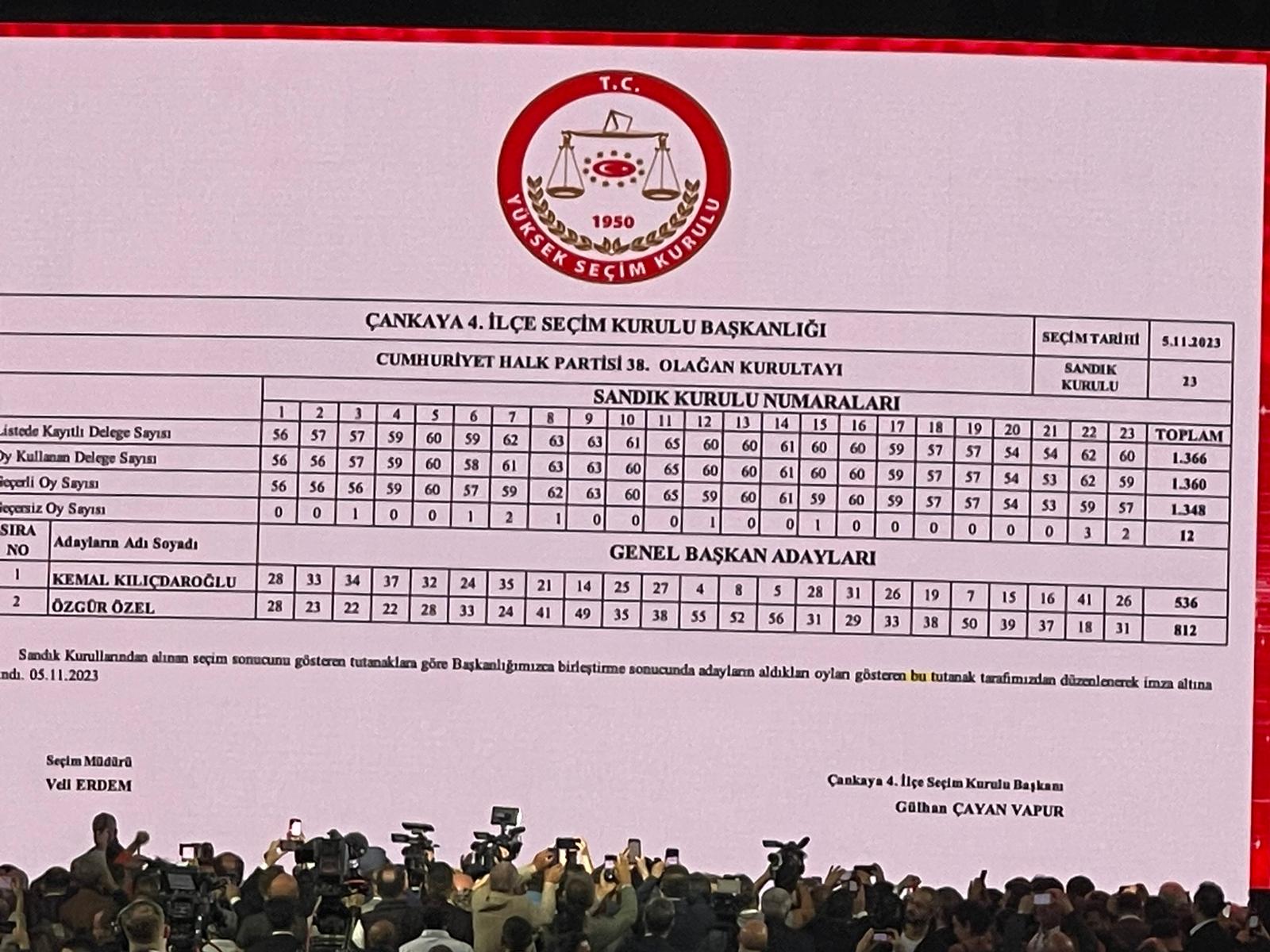 Kurultay’da oy verme işlemi tamamlandı. İlk tur sonuçlarına göre Kılıçdaroğlu 664, Özgür Özel 682 oy aldı.