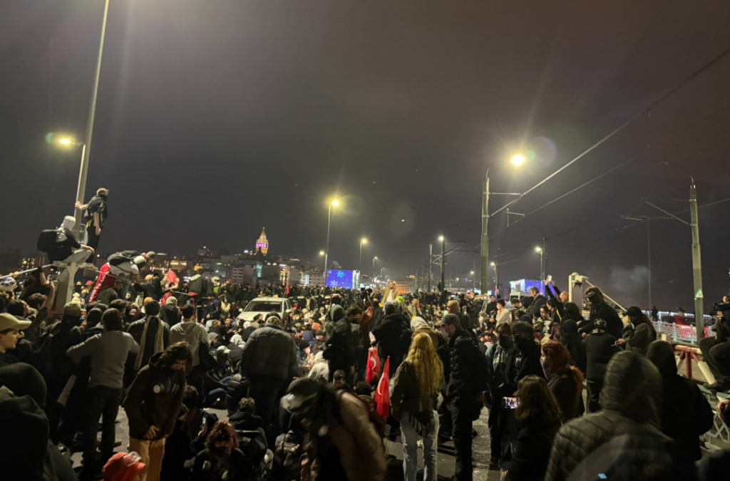 Galata Köprüsü’ndeki oturma eyleminin başlamasından 45 dakika sonra polis, köprüyü kapatan öğrencilere müdahale etti. Müdahalenin ardından öğrenciler, Bozdoğan Kemeri’ne doğru yürüyüşe geçti.