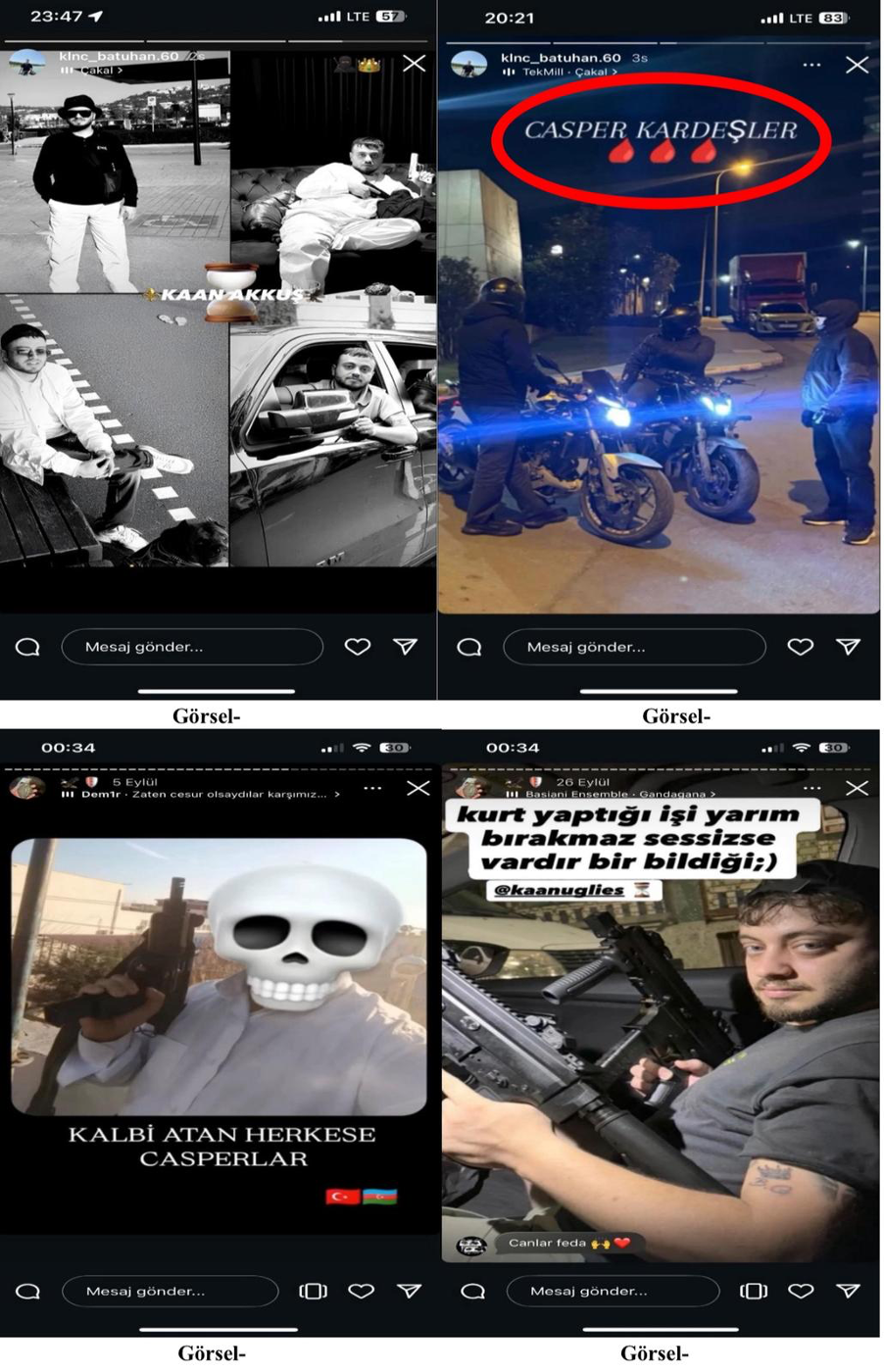 Örgüt üyeleri, sosyal medya üzerinden yaptıkları paylaşımlarla husumet içinde oldukları gruplara gözdağı veriyor.