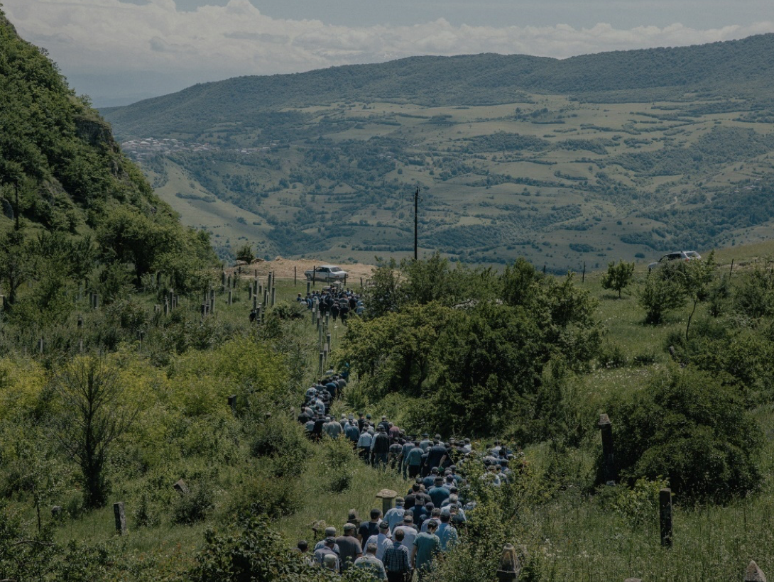 Kırk yaşındaki bir asker olan Rustamov Münir Zalbegoviç’in cesedini yas tutan bir kafile mezarlığa taşıyor