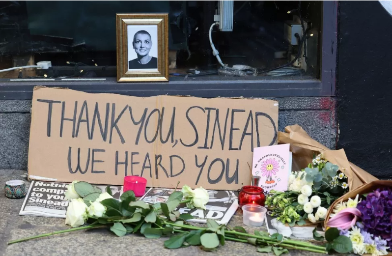İrlanda’da birden ortaya çıkan bu yas, bir kadının O’Connor’ın ölümüne tepki olarak şiir okuması üzerine gerçekleşti. İnsanlar mumlar, tütsüler ve çiçeklerle küçük bir anma töreni oluşturmaya başladılar. Karton üzerine çizilmiş bir tabelada “Teşekkürler Sinead” yazıyordu. “Seni duyduk…”