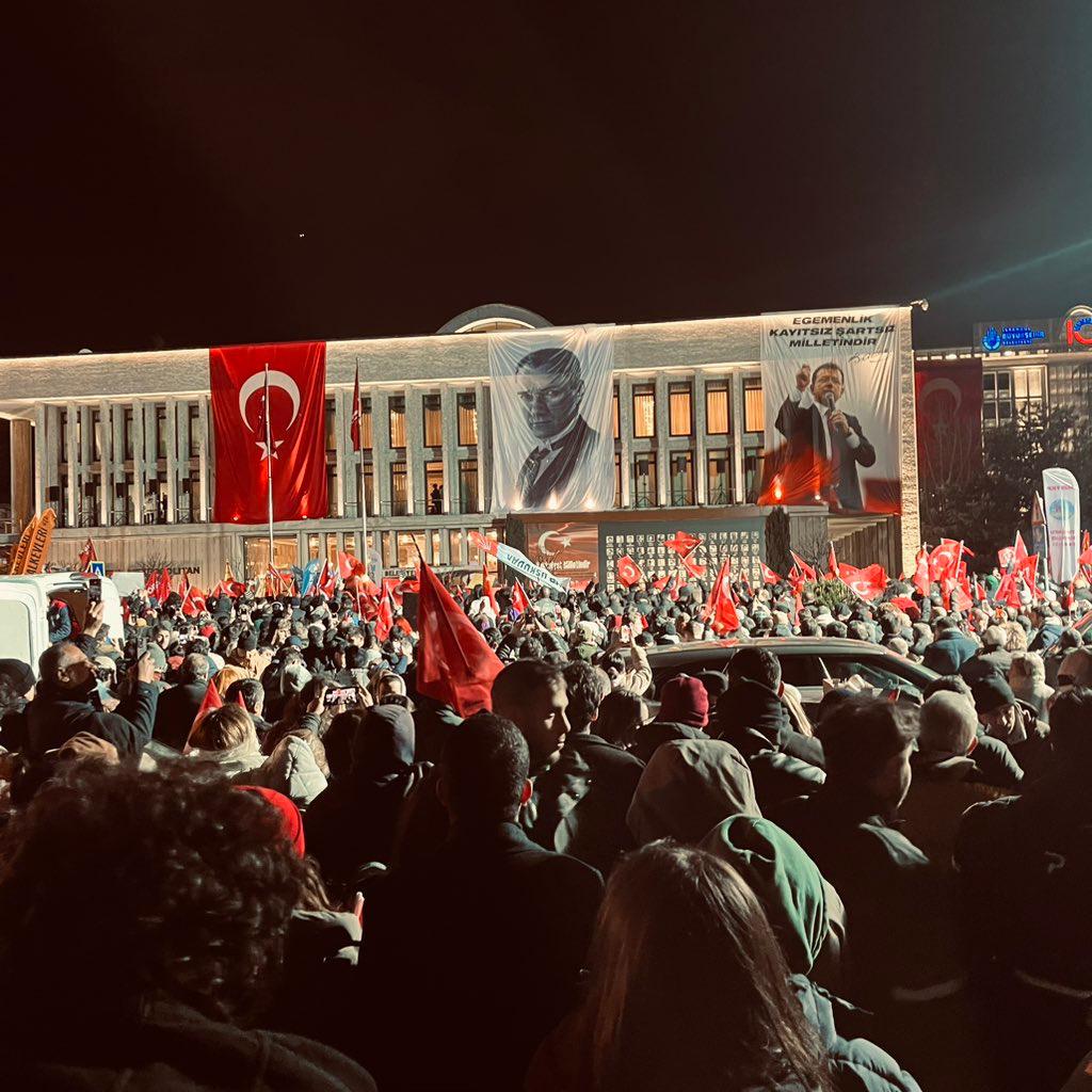 Bizim demokrasi anlayışımız içinde kimsenin burnu bile kanamadan, demokratik tepkileri gördünüz. Çok önemli bir birliktelik çok önemli bir resim verildi. Bugün buradayız yarın yine burada olacağız. Yarın siyasi partilerin de katılımlarının olduğu bir birlikteliği müjdeleyebiliriz. Bugün akşam 20.30’da Ekrem Başkanımıza destek için Saraçhane’ye bekliyorum.”
