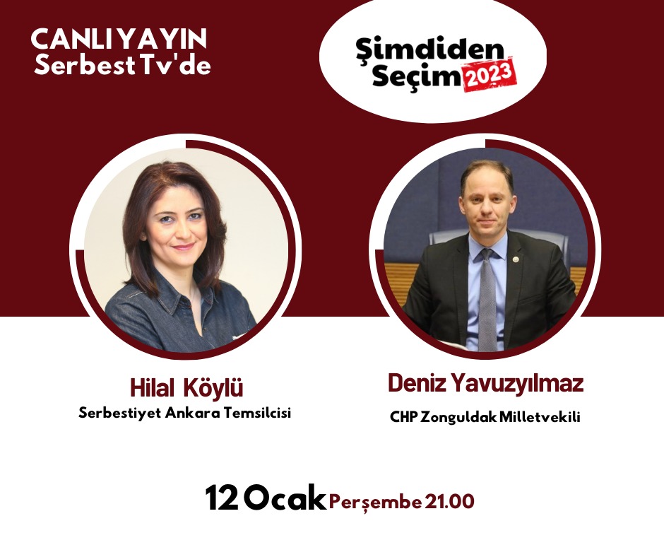 Serbestiyet Ankara Temsilcisi Hilal Köylü'nün hazırlayıp sunduğu Şimdiden Seçim 2023, her hafta Salı ve Perşembe günleri saat 21.00'den itibaren canlı yayınla Serbest TV'de.