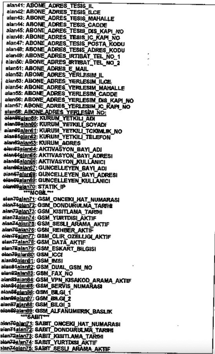 Tabii hangi siteye hangi saatte girdiği ve ne kadar kaldığının yanında abonelerin; tc kimlik numarası, adres, vergi numarası, meslek kimliği sunduysa onun seri numarası hatta ve hatta annesinin kızlık soyadına kadar bütün bilgileri talep ediliyor. İstenilen bilgiler şöyle: