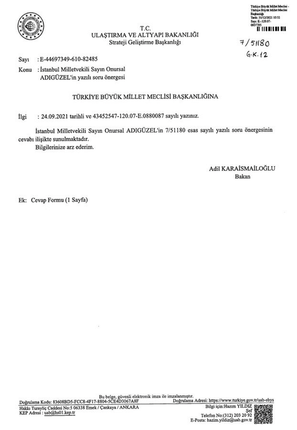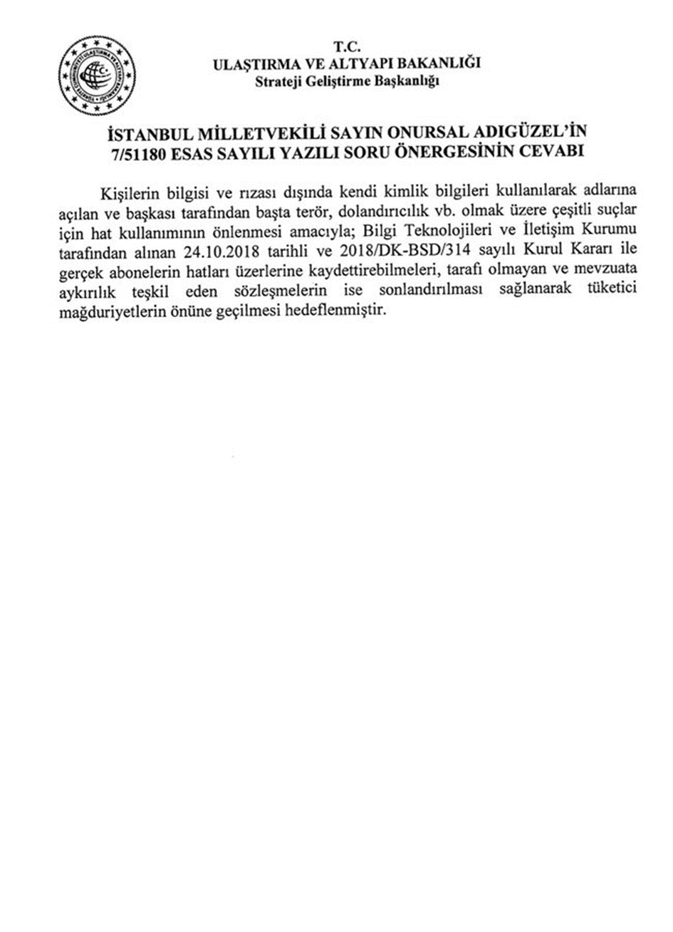 Biz bu duyumu aldığımızda bu durumu Ulaştırma ve Altyapı Bakanı Adil Karaismailoğlu’na sormuştuk. Aldığımız cevap: