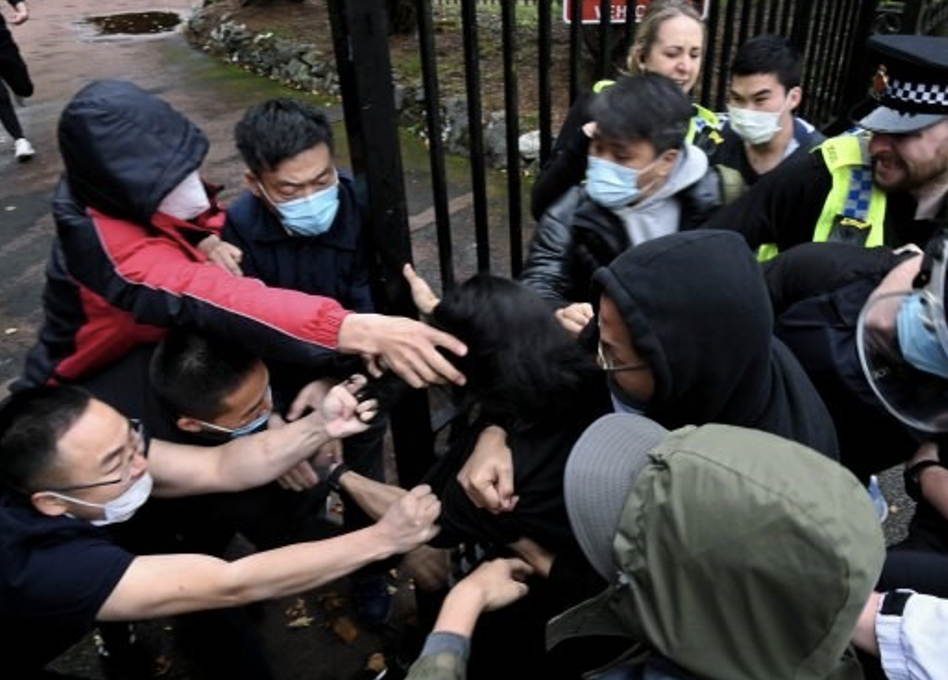16 Ekim Pazar günü Birleşik Krallık’ın Manchester kentindeki Çin Konsolosluğu binasının önündeki sokakta Çin’i protesto eden Hong Kong’lu bir gösterici binadan çıkan Çinli yetkililerce dövülmüş ve binanın içerisine sokulmak istenmişti. Göstericiyi İngiliz polisi Çinli yetkililerin elinden zor kurtarmıştı. Darp edilen Bob lakaplı Hong Kong’lu gösterici Çinli yetkililere “Burası Birleşik Krallık, temel hak ve özgürlüklerimizi kullanabiliriz” diye tepki göstermişti.