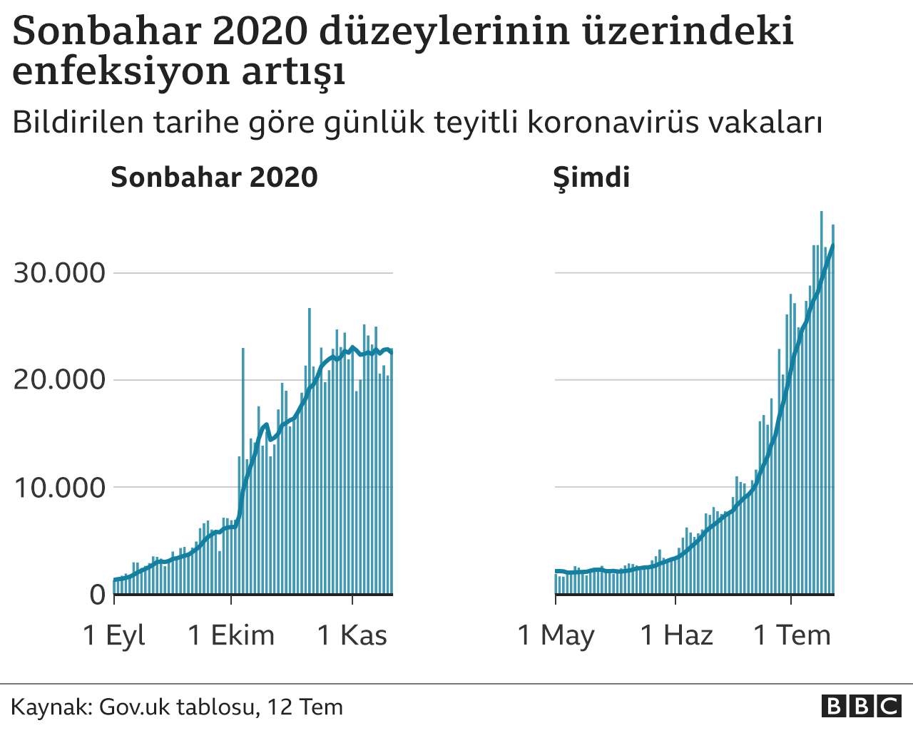Son dönemde ülke çapında Covid vakalarında keskin bir yükseliş söz konusu. 12 Temmuz’da 34.471 vaka kayıtlara geçti. Bir önceki haftaysa bu sayı 27.334 olmuştu.