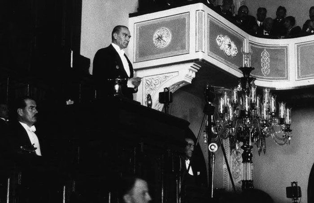 Ağır nezle olan Mustafa Kemal’e, berbat bir diş ağrısı musallat olmuştu. Büyük bir gayretle kalktı giyindi, İstiklal Madalyası’nı taktı, öğleden sonra Meclis’e geldi ve kürsüye çıktı. Salonun sessizliğinde söze başladı. Uzun konuşmadı. Meseleyi bir saat kadar inceledikten sonra düşüncelerini umumi heyete bildirecekti. Bir saat sonra da teklifini üç dört kısa cümlede açıkladı.