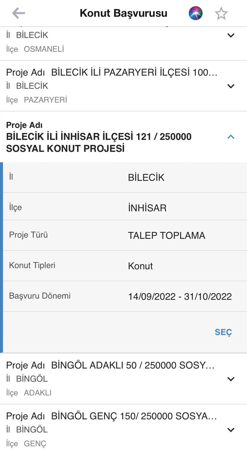 “Proje gerçekleşebilirse çok güzel olur. Ancak mevcut verilerle zor görünüyor. Şöyle ki; hali hazırda açıklanan projeler ile ilgili ihaleler devam ediyor. Mesela başvuru ekranından konut yapılacak bir ili örnek alalım. Bilecik İli İnhisar ilçesi.