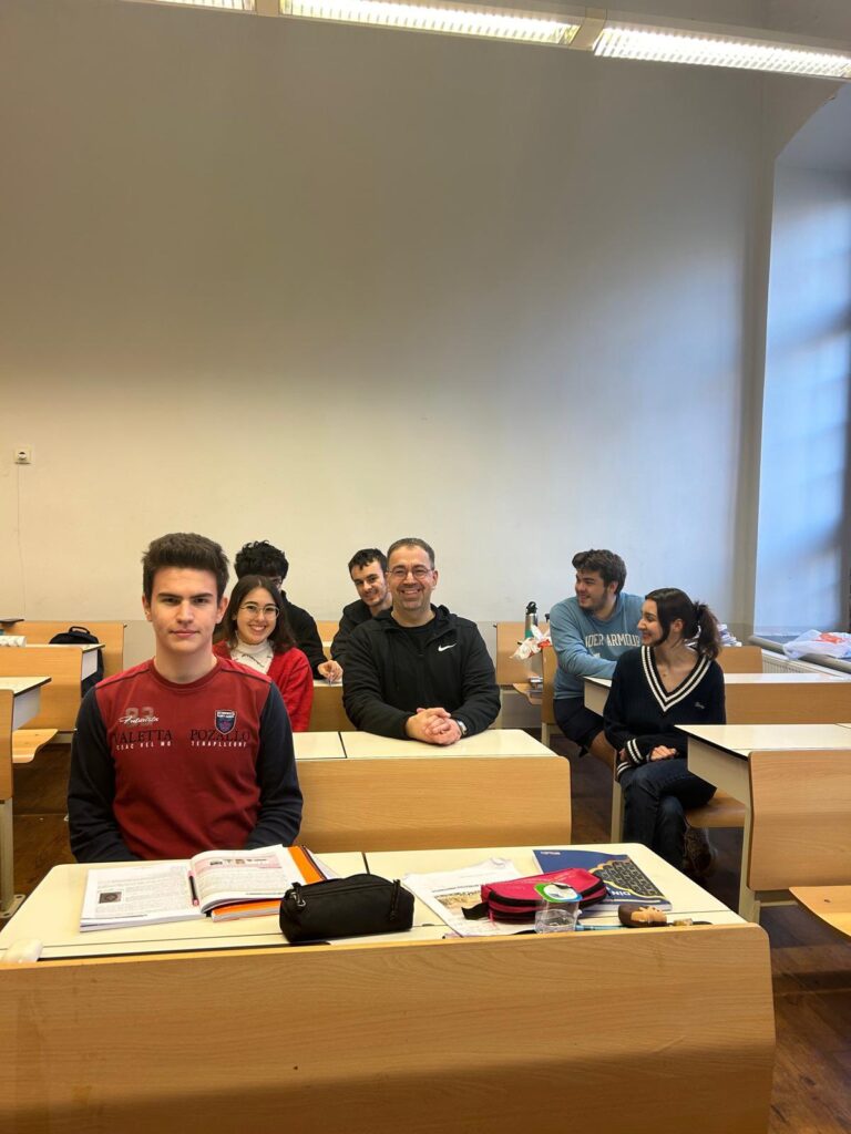 12. sınıf öğrencileriyle akademik hayatına ve Nobel Ödülü’ne dair sohbet eden Acemoğlu, daha sonra kendi sınıfı 12 FEN/B sınıfında öğrencilerle etüde katıldı.