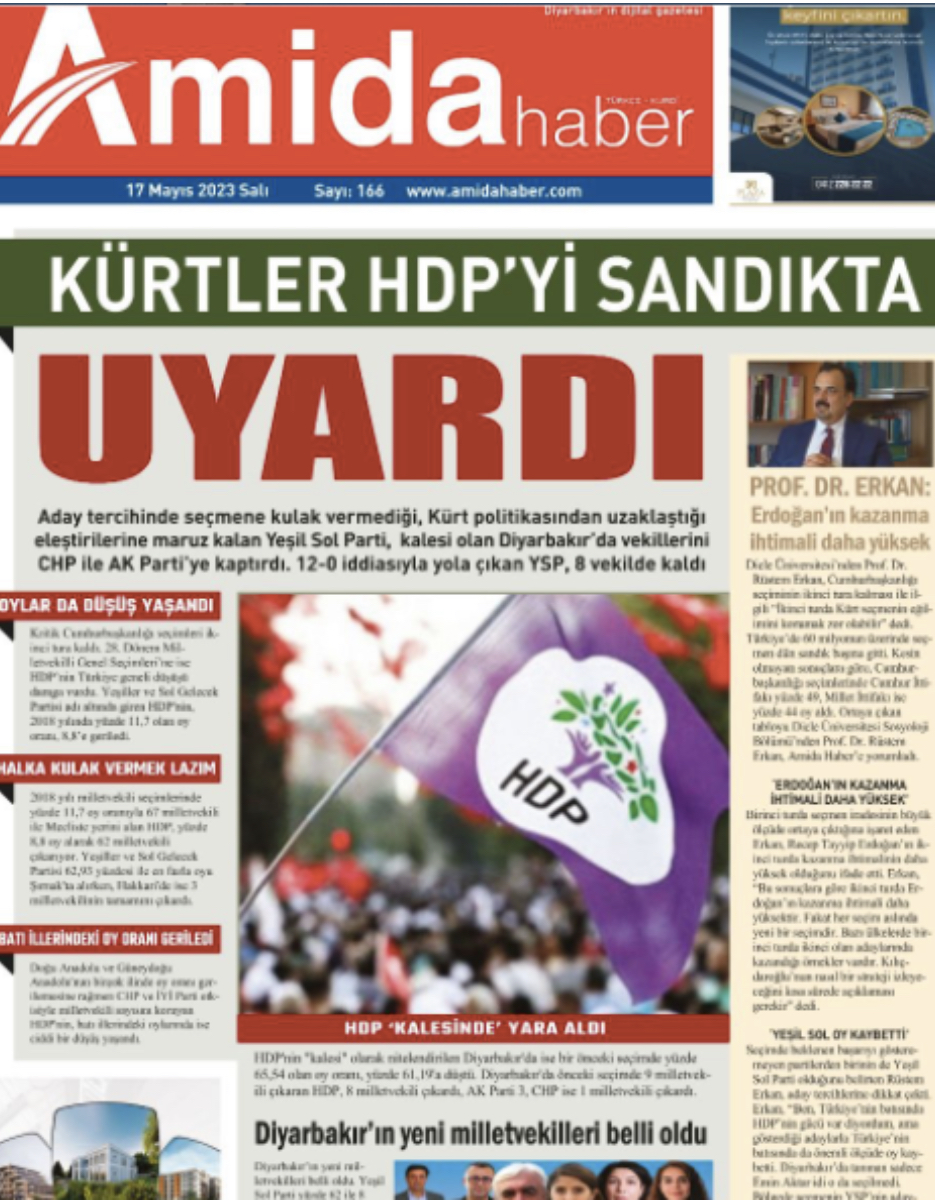 Yine Diyarbakır’da yayın yapan Amida Haber gazetesi ise ‘’Kürtler HDP’yi uyardı” manşetiyle çıktı.