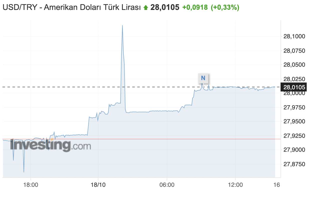 Saat 15.30 itibariyle ise Dolar/TL 28,0100’den işlem görüyor.