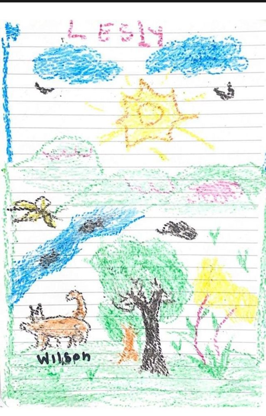 Çocuklardan Lesly ve Soleiny’nin, kendilerini hastanede ziyaret eden ordu komutanı Helder Fernan Giraldo Bonilla’ya verdikleri resimlerde de Wilson olabilecek bir köpeğin çizimi var.