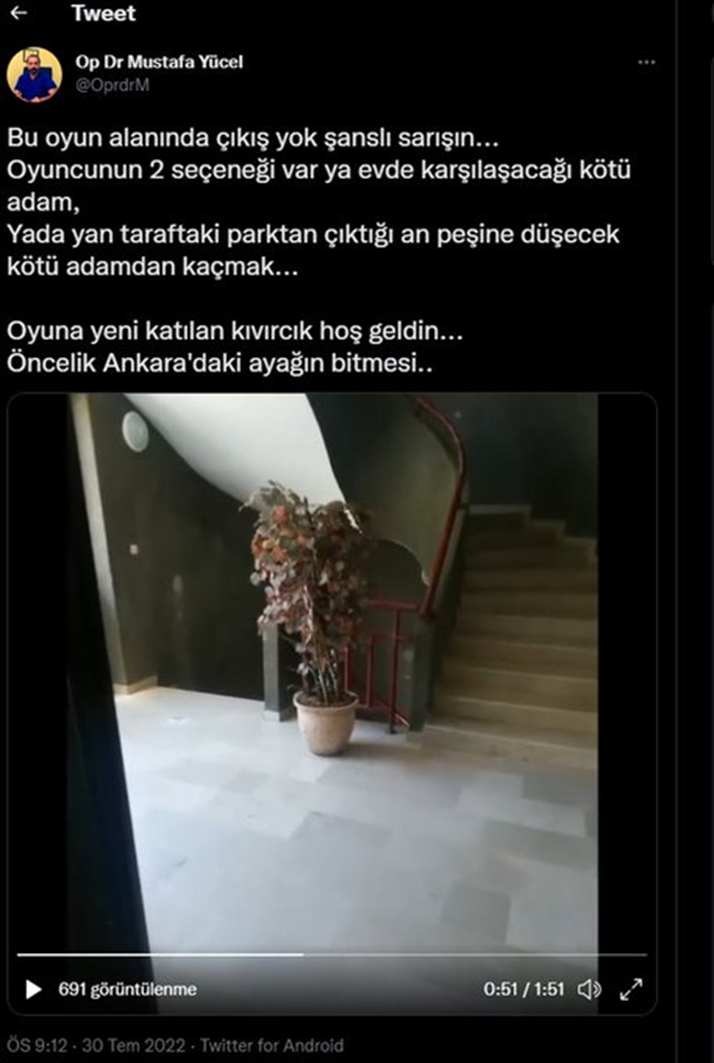 Enfeksiyon Hastalıkları Uzmanı Prof. Dr. Esin Davutoğlu Şenol’u tehdit ettiği için ifade verdikten sonra serbest bırakılan Mustafa Yücel, sosyal medya hesabından “Durmak yok yola devam” mesajı paylaştı.
