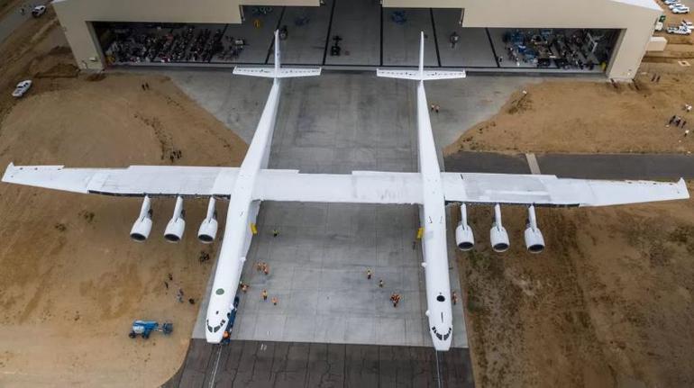 Dünyanın en geniş kanat açıklığına sahip uçağı gün yüzüne çıktı. Altı yıl önce başlayan proje sonunda bir futbol sahasından daha uzun kanat açıklığına, mavi balinadan daha fazla ağırlığa ve altı adet Boeing 747 yolcu uçağı motoruna sahip Stratolaunch adlı devasa uçağın üretimi tamamlandı.