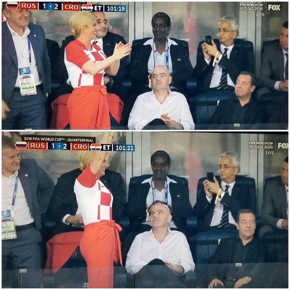 Penaltılarda rakibi Rusya'ya 4-3 üstünlük sağlayan Hırvatistan'ı ilk kutlayan da yine Rusya Başbakanı Dimitri Medvedev oldu.