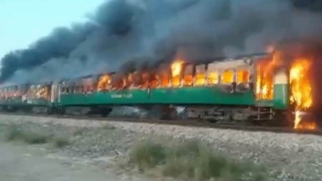 Hareket halindeki trende çıkan yangının en az 3 kompartımanı hasar gördü. Demiryolları Bakanı Sheikh Rashid Ahmed, yakında bir hastane olmadığı için yaralananların helikopterlerle hastanelere taşındığını söyledi.