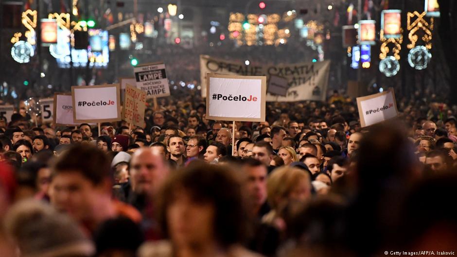 Haber portalı danas.rs başkent Belgrad'da Cumartesi akşamı düzenlenen protestolara katılanlar, "Başladı" ve "Herkes özgür olmadığı sürece kimse özgür değildir" pankartları taşıdıklarını bildirdi.