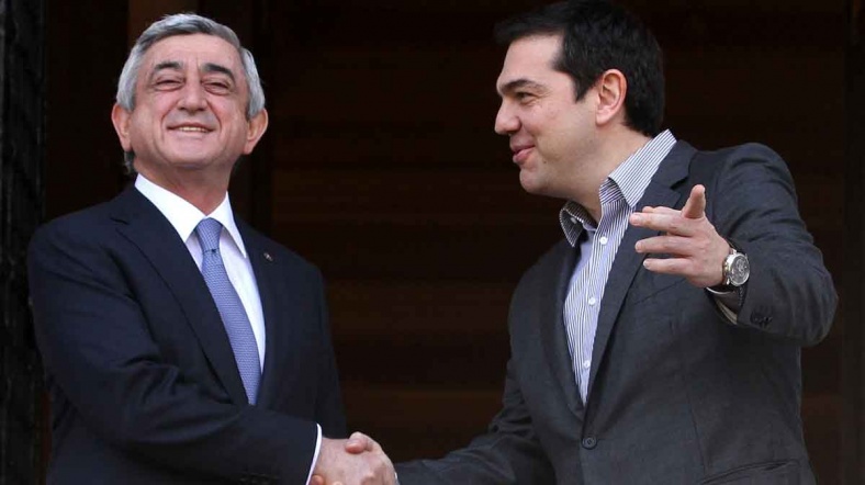Ermenistan Cumhurbaşkanı Sarkisyan'ın Yunanistan'ı ziyareti kapsamında, 15 Mart'ta ikili tarafından yapılan ortak açıklamada, Çipras, "Halklarımızın tarihi paraleldir. Mağdur kaldıkları zorluk ve kovuşturmalar tarihi, Ermeniler ve Pontus Rumlarına yapılan soykırımların iz bıraktığı bir tarihtir" şeklindeki görüşünü paylaşmıştı. Cumhurbaşkanı Sarkisyan da Yunanistan'ın 1915 olaylarına ilişkin tutumunu överek, "Bütün bunlar, dayanışma ruhunun yıllardır halklarımızı birleştirdiğini ve birleştirmeye devam edeceğini göstermektedir" değerlendirmesinde bulunmuştu.