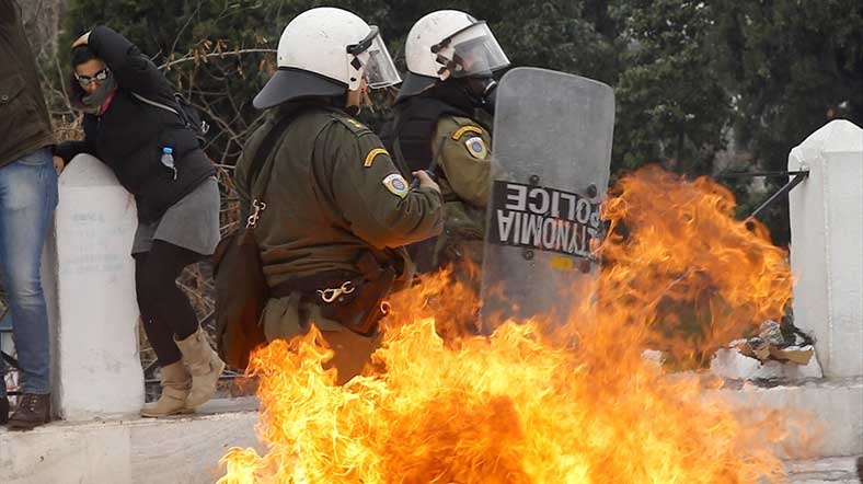 Polis, Panepistimiu Caddesi’nde ve Sintagma Meydanı'nda taş ve molotofkokteylleri ile saldırıda bulunan grupları dağıtmak için göz yaşartıcı gaz kullandı.