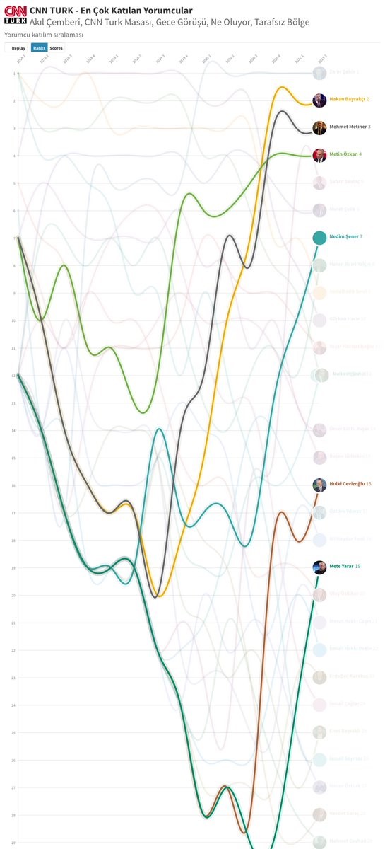 Nedim Şener, Mete Yarar, Hulki Cevizoglu gibi isimler özellikle son bir yıldır ekranda sıklıkla yer buluyor. Hakan Bayrakçı, Mehmet Metiner ve Metin Özkan isimleri uzun zamandır yükselen bir grafiğe sahip.
