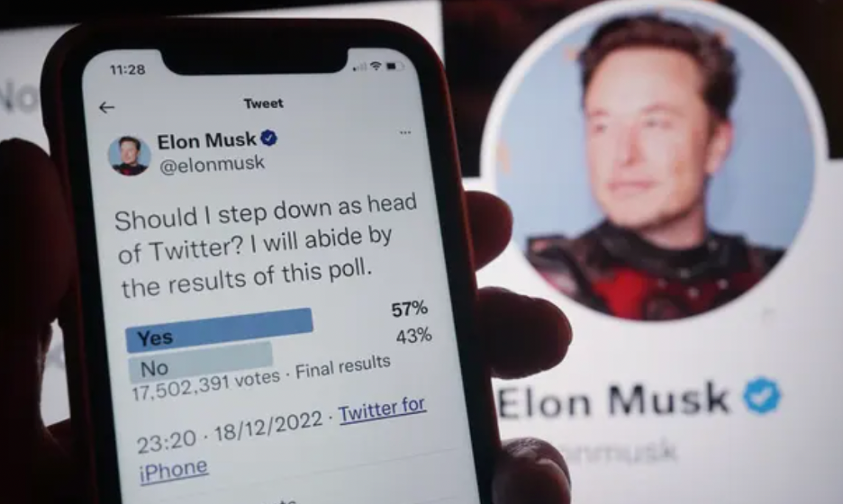 Musk’ın kendisi hakkında yaptığı anket neticesinde toplam 17,5 milyon kişi oy kullanmış, oy verenlerin yüzde 57’si, yani yaklaşık 10 milyon kişi yöneticilikten ayrılmasını talep etmiş, o da anket sonuçlarına uyacağını, yerine yenisini bulduktan sonra görevi bırakacağını açıklamıştı.