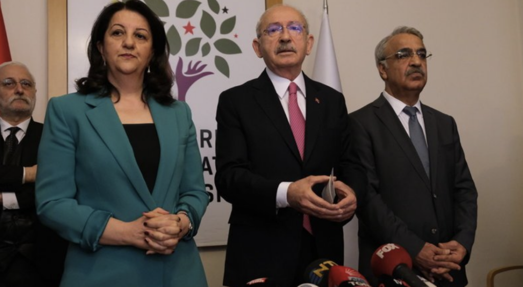 CHP lideri Kemal Kılıçdaroğlu, HDP yönetimi ile mecliste yaptığı görüşmede HDP’nin kapatılması davasına ilişkin bilgi de aldı. HDP yönetimi; partinin kapatılması durumunda Yeşil Sol Parti çatısı altında seçime girileceğini, vekil listelerinin bu ihtimale göre hazırlandığı bilgisini Kılıçdaroğlu ile paylaştı.