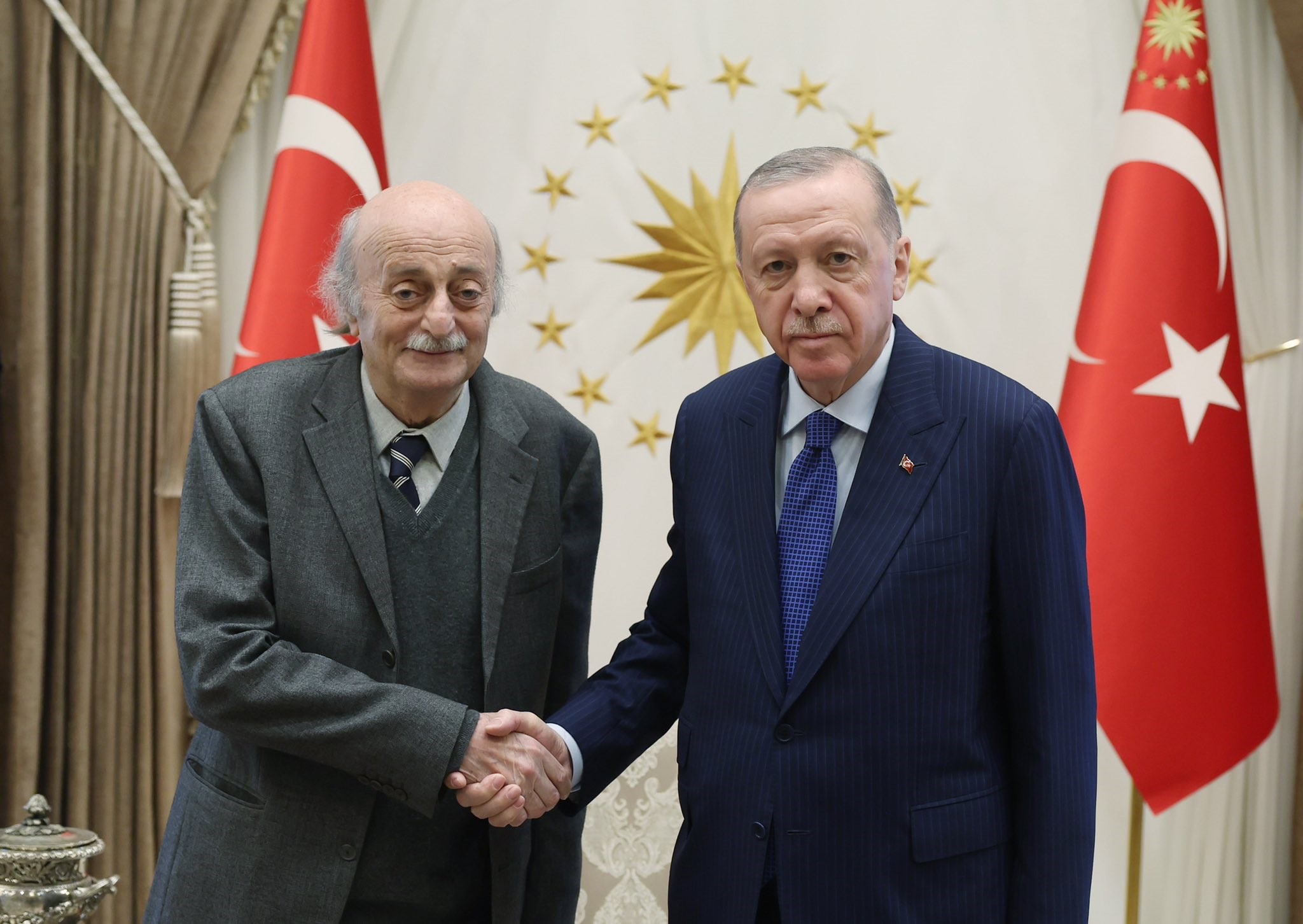 Cumhurbaşkanı Recep Tayyip Erdoğan, Lübnanlı Dürzi lider Velid Canbolat’ı Beştepe’de Cumhurbaşkanlığı’nda kabul etti.