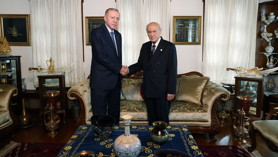 Devlet Bahçeli, görüşmenin ardından Cumhurbaşkanı Erdoğan’ı, konutun kapısından aracına kadar uğurladı.