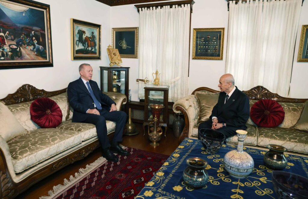 Devlet Bahçeli, görüşmenin ardından Cumhurbaşkanı Erdoğan’ı, konutun kapısından aracına kadar uğurladı.