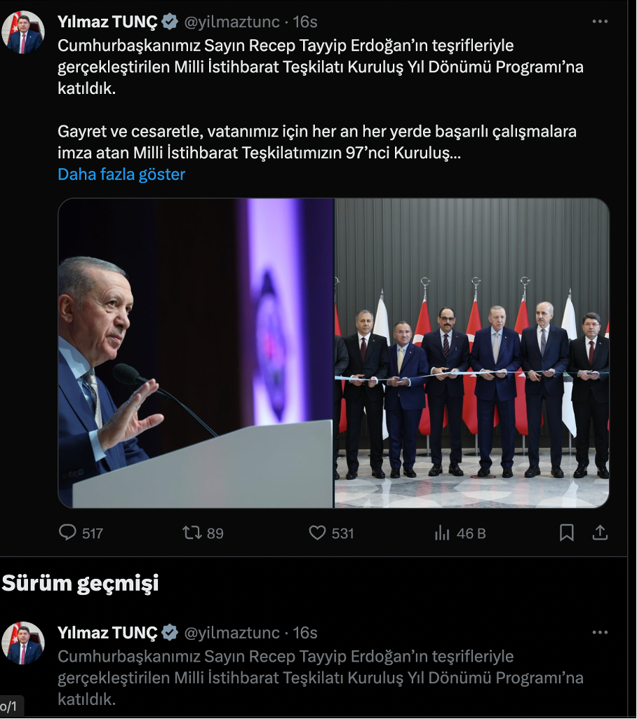 Benzer fotoğraflar Adalet Bakanı Yılmaz Tunç’un sosyal medya hesabından da paylaşıldı ve daha sonra kaldırıldı.