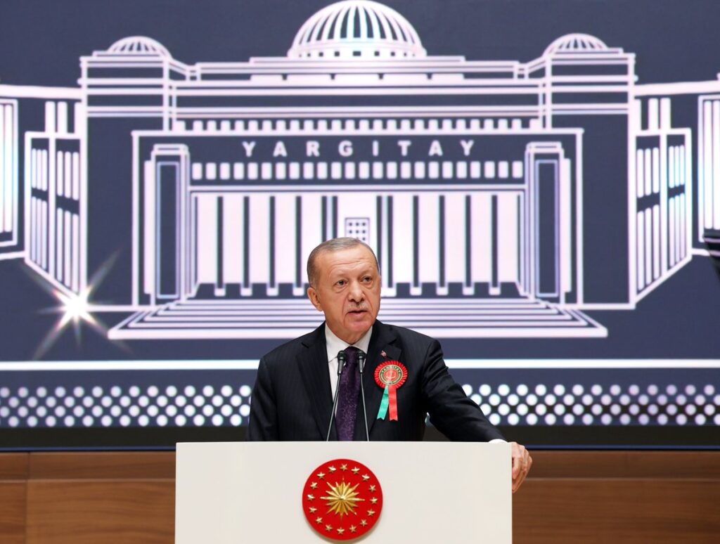 Yargıtay’da düzenlenen yeni adli yıl açılış töreninde konuşan Erdoğan, Türkiye’nin anayasada belirtildiği gibi demokratik, laik, sosyal bir hukuk devleti olduğunu hatırlattı. Anayasa’daki “hukuk devleti” vurgusunun AK Parti iktidarı boyunca çok önemli olduğunu anlatan Erdoğan, son 20 yılda Türkiye’nin hukuk devleti vasfını güçlendirmek için önemli reformlara imza atıldığını söyledi.