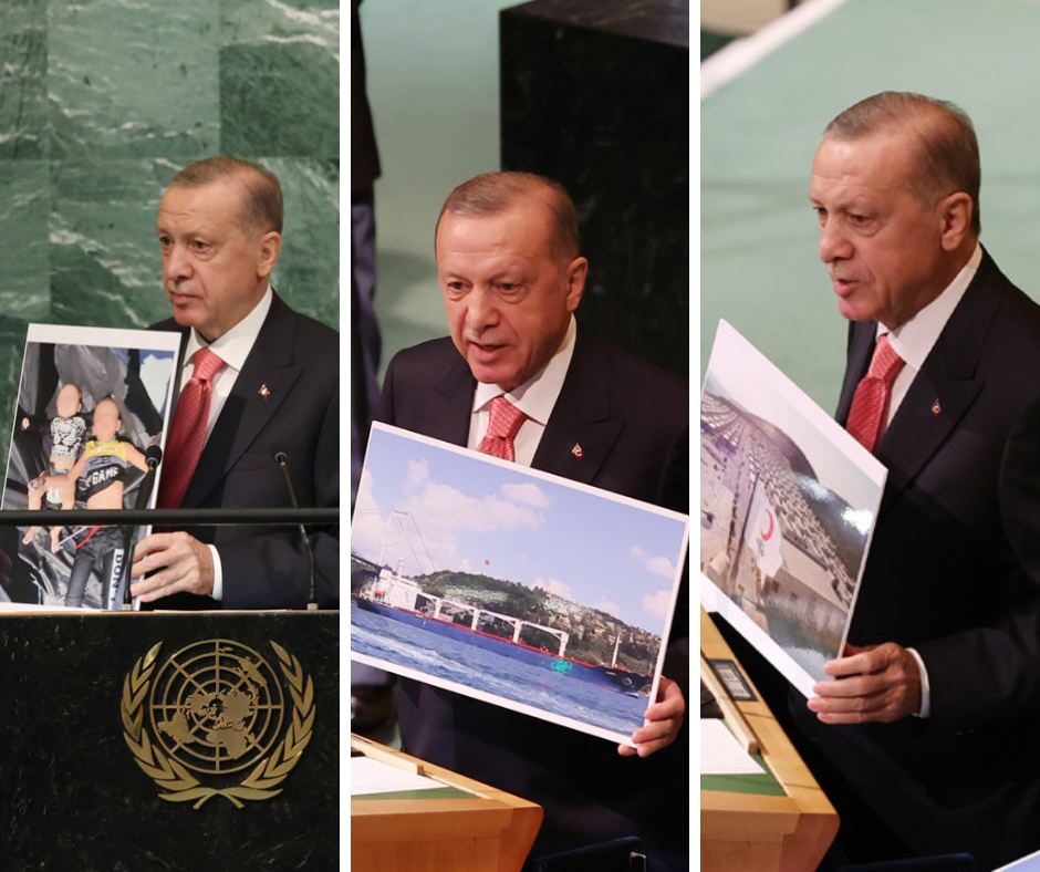 Cumhurbaşkanı Erdoğan, New York’ta 77.’si düzenlenen Birleşmiş Milletler toplantısında Genel Kurul’a hitap etti. Konuşmasında sık sık görsel materyaller kullanan Erdoğan’ın açıklamalarından öne çıkan satırlar şu şekilde oldu: