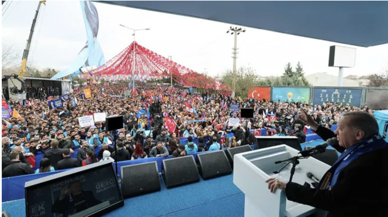 “Bugün de Diyarbakır’a 21 yıldır yürüttüğümüz demokrasi ve kalkınma atılımlarımızın yeni bir safhasında desteğini istemeye geldik. 31 Mart’ta burada partiler yarışmıyor, burada yarışan eser ve hizmet siyasetiyle kirli pazarlık siyasetidir.”