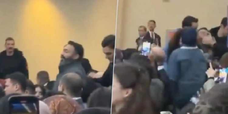 Aynı etkinlikteki bir kadın da Erdoğan’ı protesto etti. Protestocu kadın, “Neden Azerbaycan petrolü Türkiye üzerinden İsrail’e gidiyor?” diye sordu. Protestocu olayın ardından güvenlik görevlileri tarafından salondan çıkarıldı.
