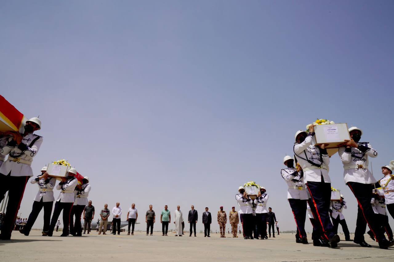 Zaho’da gerçekleşen bombardımanda hayatını kaybeden 9 Iraklı sivilin cenazesini taşıyan uçak Bağdat'a vardı Irak Başbakan Mustafa Kazımi ve diğer güvenlik yetkilileri havaalanında düzenlenen törende hazır bulundu