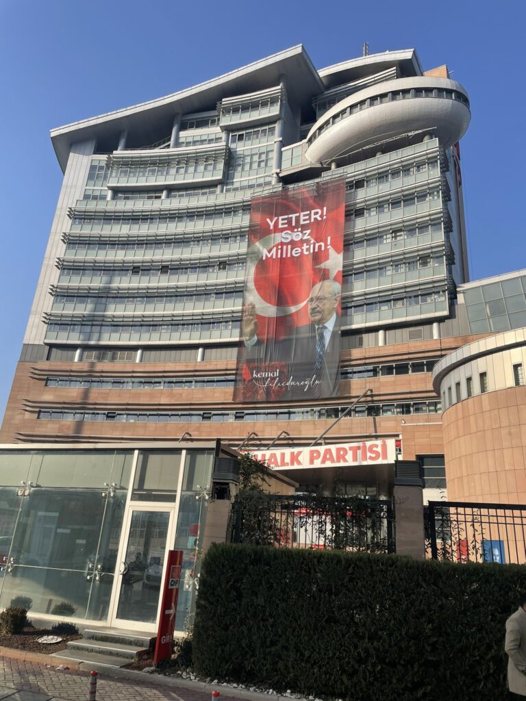 Altılı Masa'nın İYİ Parti'nin ev sahipliğinde gerçekleşen toplantısı devam ederken CHP Genel Merkezi'ne "Yeter Söz Milletin" pankartı asıldı. Bu slogan, 14 Mayıs 1950 seçimlerinde Demokrat Parti tarafından, CHP yönetimine karşı seçim sloganı olarak kullanılmıştı.