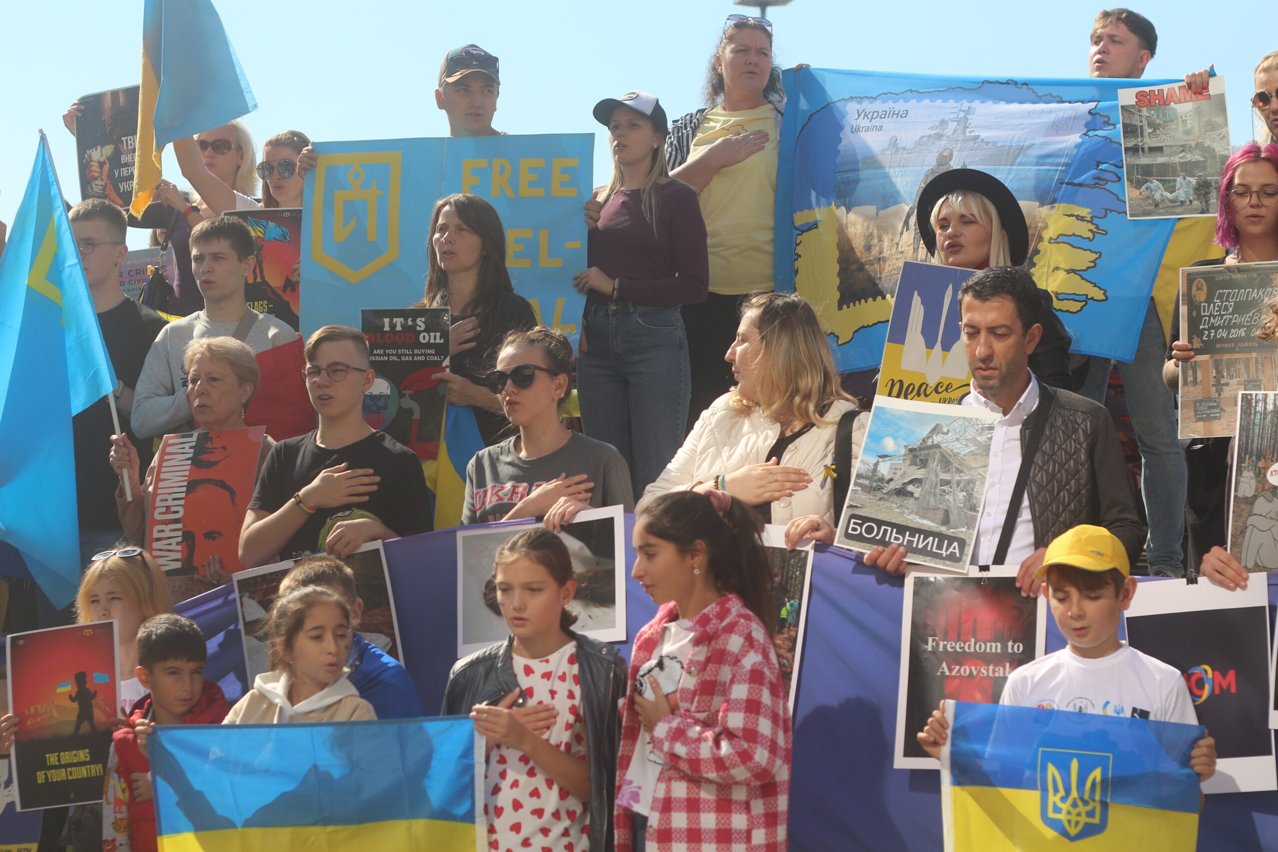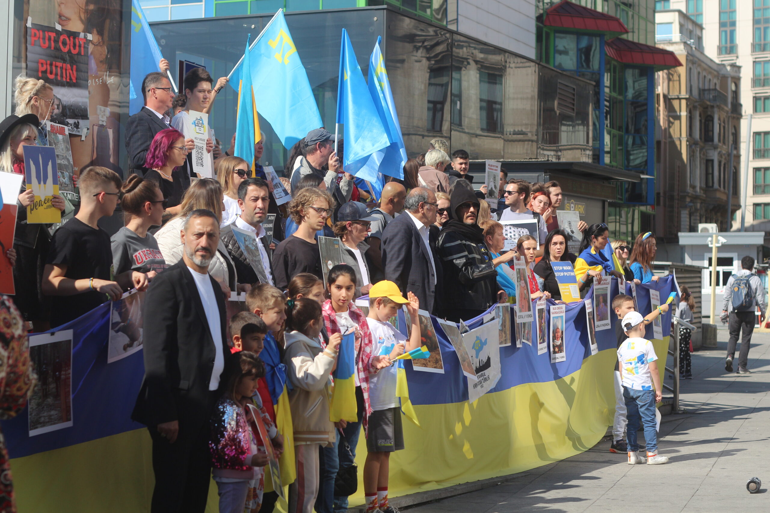 Ukraynalılar, Rusya’nın ülkelerini işgal girişimini protesto ederken İstanbul’da Bayraktar SİHA’ları için yazılan Ukraynaca şarkıyı da söylediler.