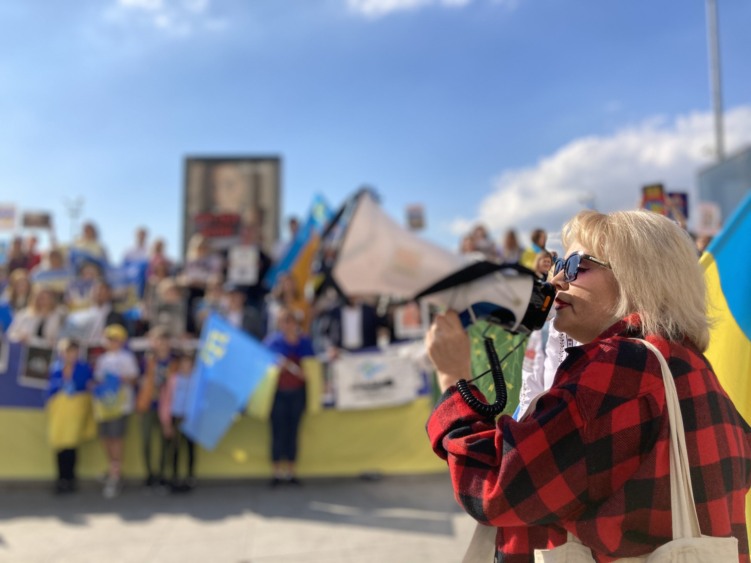 Ukraynalılar, Rusya’nın ülkelerini işgal girişimini protesto ederken İstanbul’da Bayraktar SİHA’ları için yazılan Ukraynaca şarkıyı da söylediler.