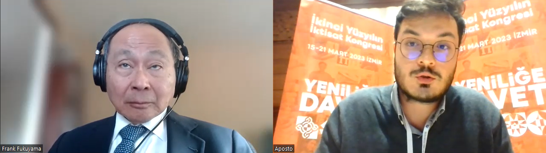 Stanford Üniversitesi’nden siyaset bilimci Prof. Dr. Francis Fukuyama, İzmir'de düzenlenen İkinci Yüzyılın İktisat Kongresi'ne çevrimiçi bağlanarak dünyada liberal demokrasilerin yaşadığı krize ve 2023 seçimlerinin Türkiye'ye sağlayabileceği fırsatlar üzerine konuştu. Aposto’dan Bartu Özden, 'Tarihin Sonu ve Son İnsan" adlı teziyle bir döneme damga vuran Fukuyama ile konuşmasının hemen ardından bir röportaj yaptı. Bu röportajı okurlarımızla paylaşıyoruz.