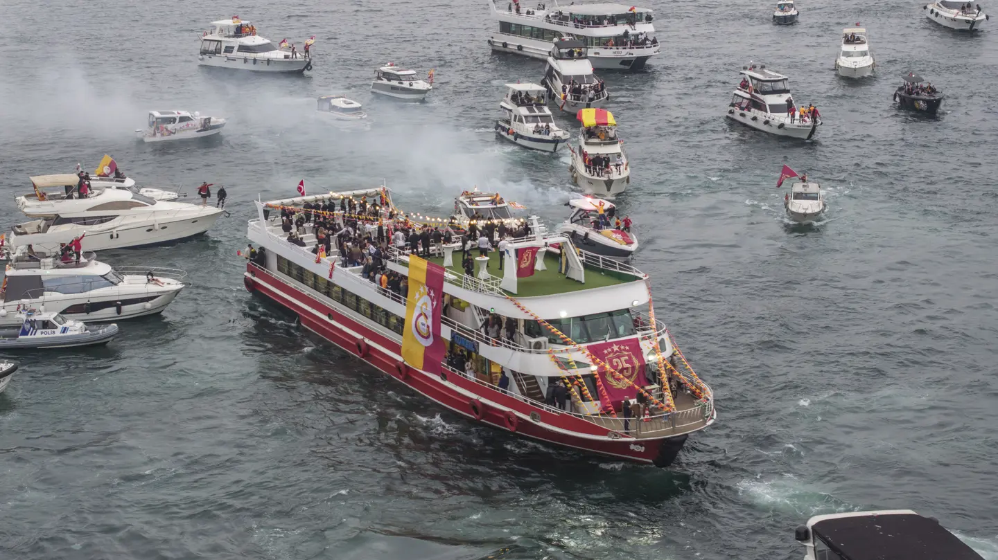 Galatasaray’ın 25. kupa şöleni Beyoğlu Galatasaray Lisesi’nden başladı. Liseden üstü açık otobüse binen futbolcular Sarayburnu’nda bekleyen tekneye yol kenarında bekleyen tekneye geldi. Buradan Yenikapı’da bekleyen yüzbinlerce taraftarın önünde kupasını aldı. Şampiyonluk kutlamalarını gün boyu süren yağmur bile etkilemedi. Galatasaraylı futbolcular, teknik heyet, teknik direktör Okan Buruk tek tek sahneye çıktı.