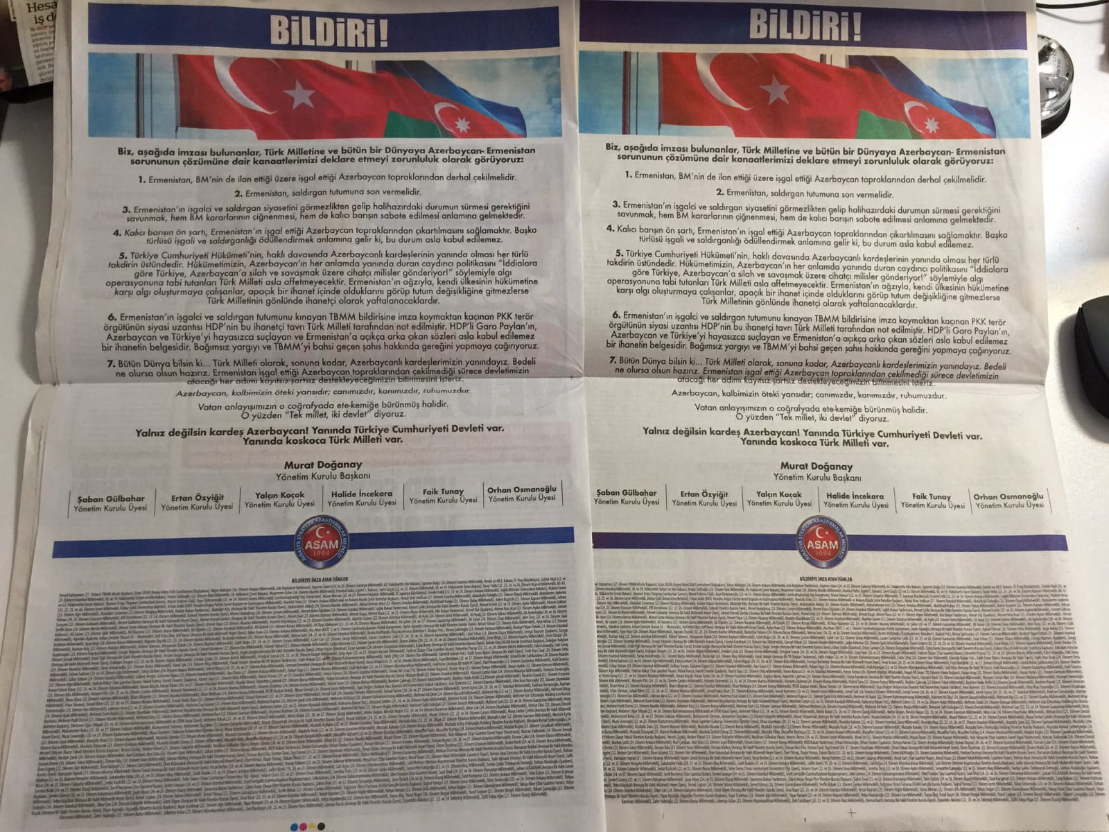 ASAM (Avrasya Stratejik Araştırmalar Merkezi) Yeni Şafak ve Akit gazetelerine tam sayfa ilanlar vererek Dağlık Karabağ ile ilgili HDP’lileri ve HDP milletvekili Garo Paylan’ı ihanetle suçlayarak hedef gösterdi.