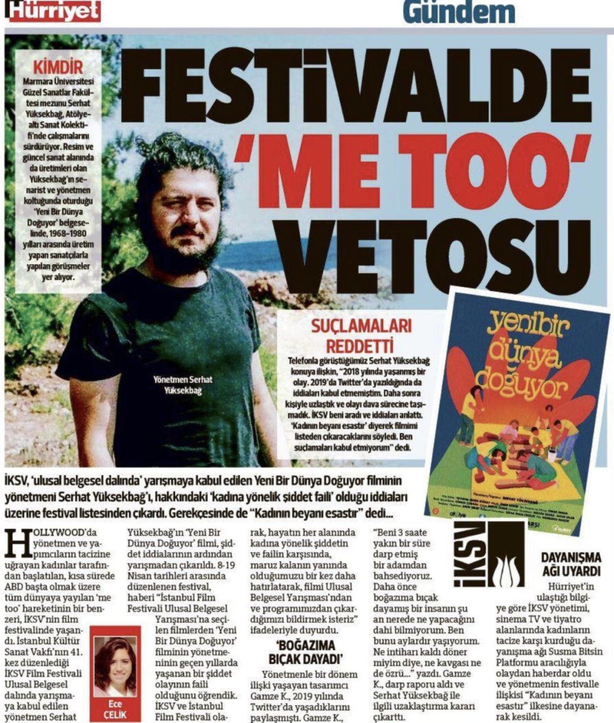 Cuma günü Hürriyet gazetesinin manşetiydi: “Festivalde Me Too Vetosu”