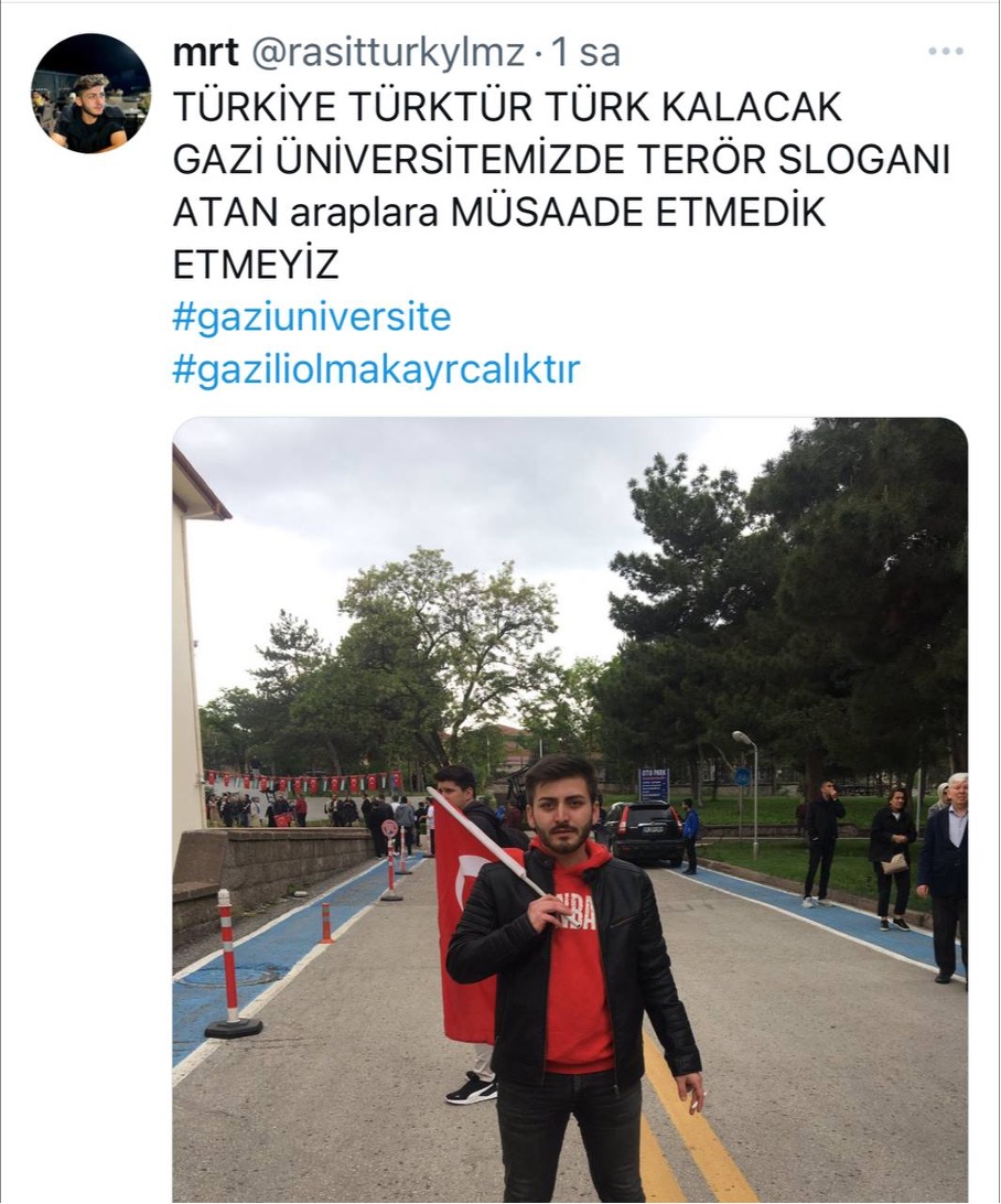 Bugünün 3 Mayıs Dünya Türkçülük Günü olduğunu söyleyen saldırganlar, “Arapça slogan yok” diye bağırıp “Ne mutlu Türküm diyene” sloganları attı.